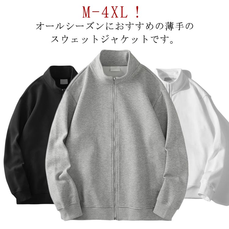 無地 スウェットジャケット メンズ 薄手パーカー ジップアップパーカー ゆったり スポーツ 長袖 スタンドカラー 大きいサイズ カジュアル