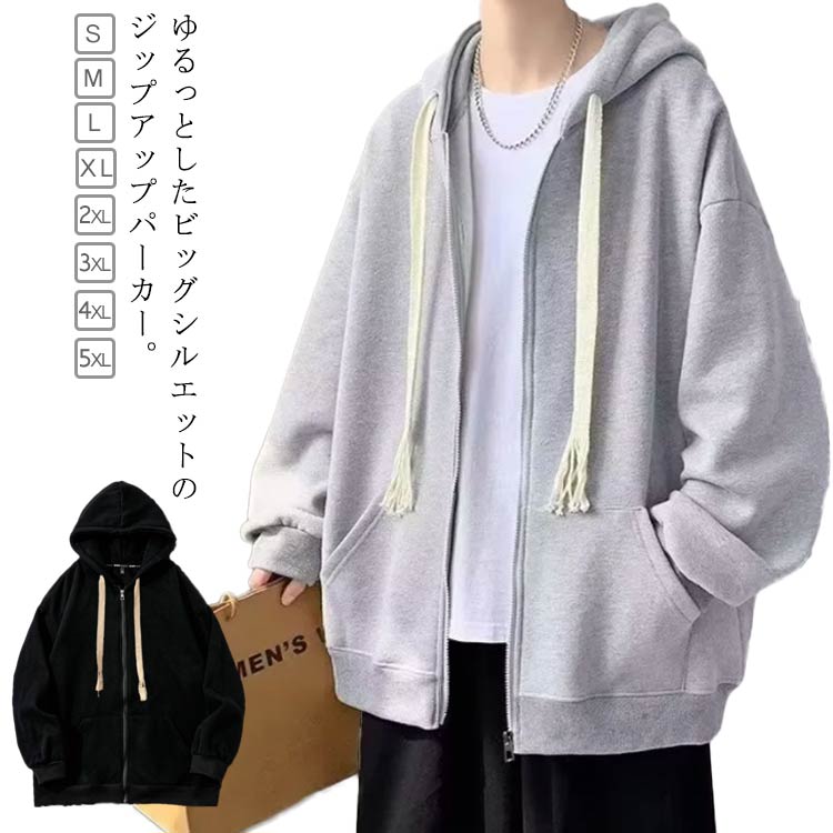 ジップアップパーカー フード付き パーカー メンズ ゆったり カーディガン 着痩せ ビッグシルエット メンズファッション 男女兼用