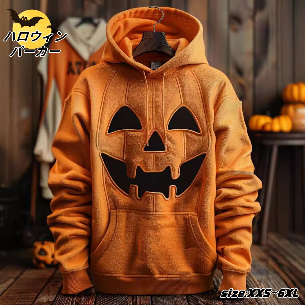 ハロウィン パンプキン かぼちゃ 黒 パーカー ハロウィーン Halloween 長袖 コスチューム ペア お揃い 仮装 パーティー プレゼント トレーナー フード付き メンズ レディース 男女兼用