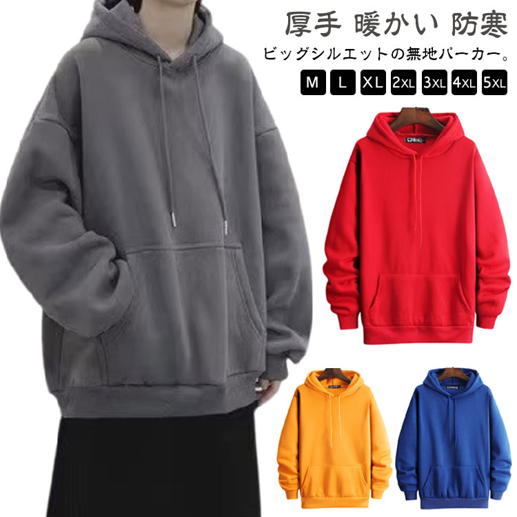 パーカー メンズ プルオーバーパーカー フード付き スウエット トップス レディース 男女兼用 オーバーサイズ 無地パーカー