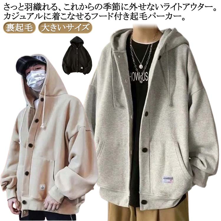 メンズ パーカー 裏起毛 暖かい 厚手 防寒 前開き パーカ 長袖パーカー ゆったり 大きいサイズ ボタンパーカー 秋冬 アウター