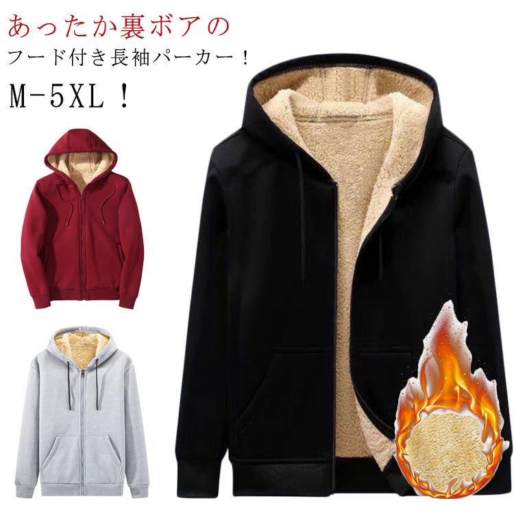 裏起毛パーカー ジップパーカー メンズ 秋冬 厚手 暖かい パーカー 裏ボア あったか おしゃれ M-5XL