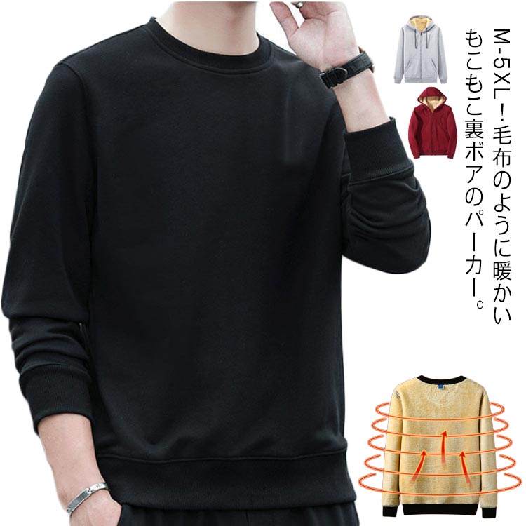 裏起毛 トレーナー メンズ レディース トップス 無地 長袖 パーカー 裏ボア カジュアル ゆったり 春 秋冬 トップス スエット