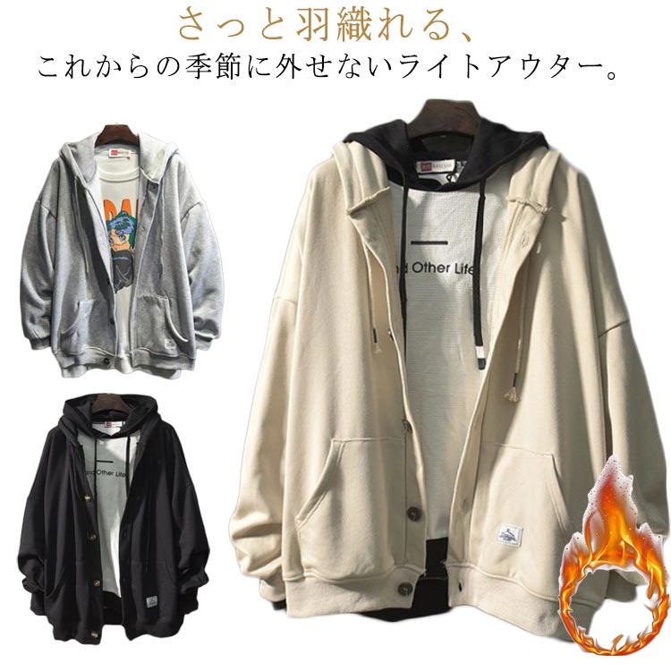 メンズ パーカー 裏起毛 暖かい 厚手 防寒 前開き パーカー 長袖パーカー ゆったり 大きいサイズ 秋冬 アウター ブラック グレー ベージュ 学生 韓国ファッション