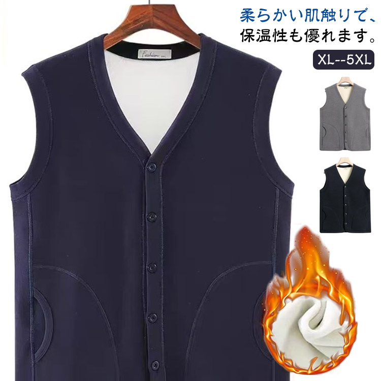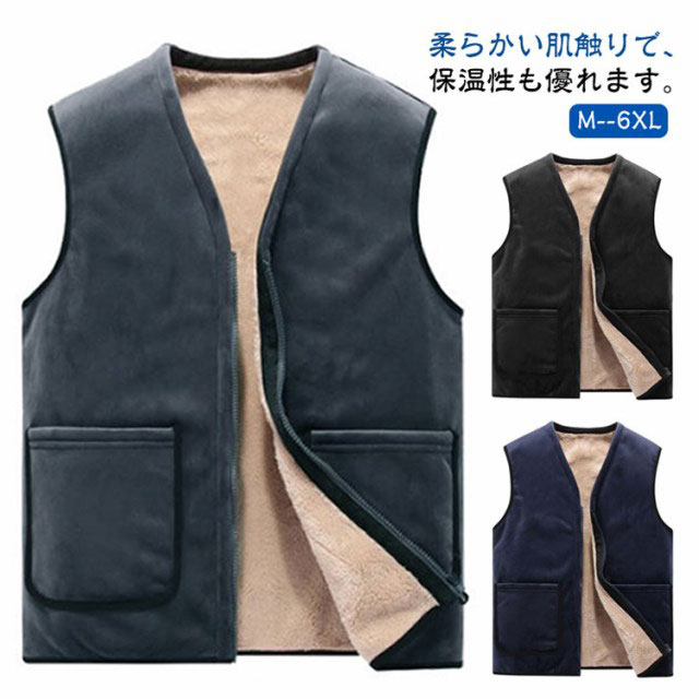 春 秋 冬 チョッキ Vネック 裏ボア インナーベスト メンズ 前開き 保温 裏起毛 防寒 あったか 軽量 無地 ベスト フリース ボアベスト