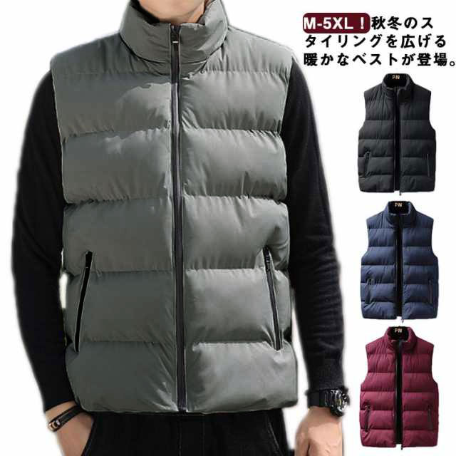 メンズ 中綿ベスト 軽量 防寒 立ち襟 無地 ジャケット ベスト M-5XL 暖かい 防寒ベスト トップス ゆったり 通学 通勤 お釣り アウトドア 春 秋 冬 秋冬