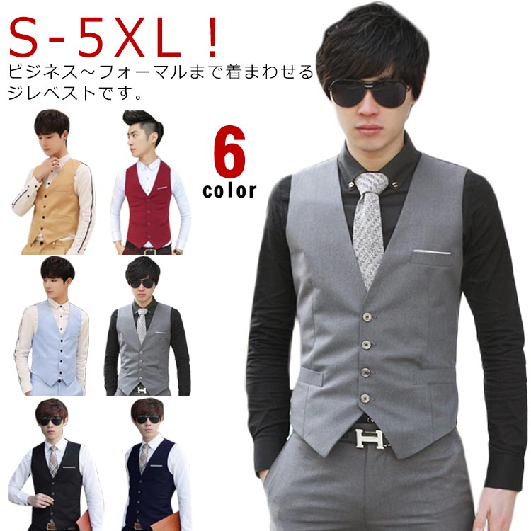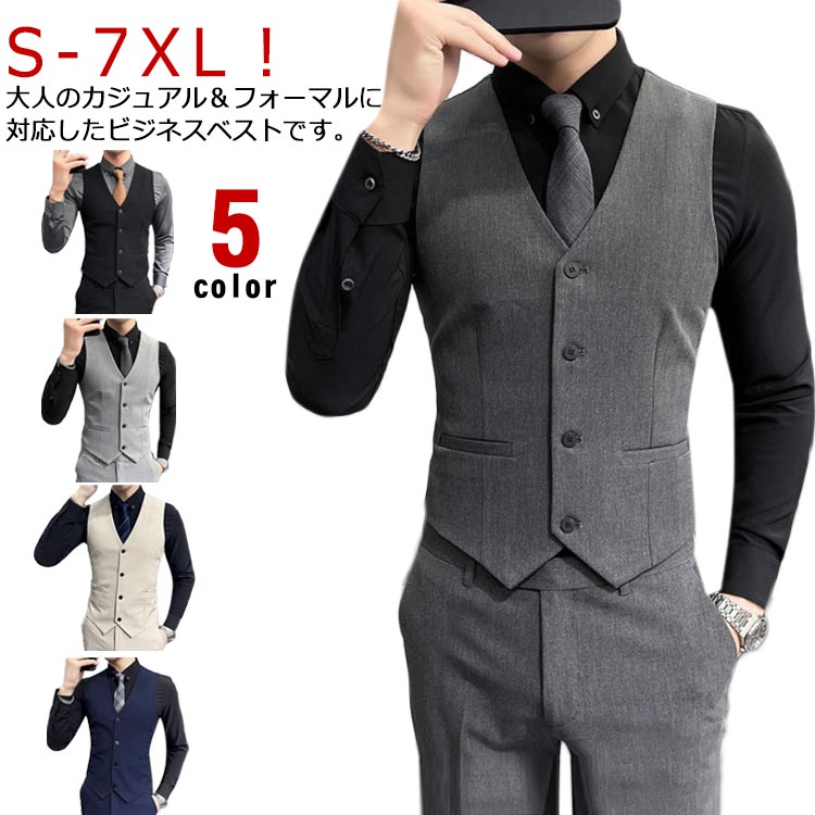 ノーカラー スーツベスト メンズ フォーマル ジレ 男性 無地 ビジネス S-5XL 尾錠付メンズファッション トップス ベスト ジレ