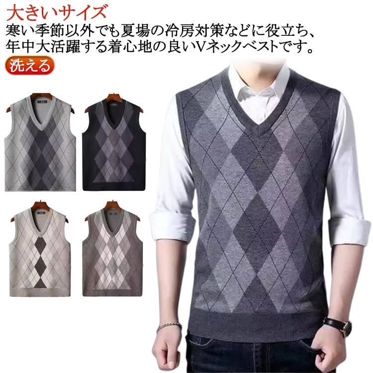 ニット ベスト メンズ ビジネスベスト 秋 冬 ギフト プレゼント ネック スーツのインナーにおすすめ 無地 ウォッシャブル シンプル 10代 20代 30代 40代 50代