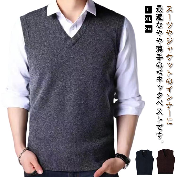 ニット ベスト メンズ ビジネスベスト 秋 冬 ギフト プレゼント Vネック スーツのインナーにおすすめ 無地 ウォッシャブル シンプル 10代 20代 30代 40代 50代