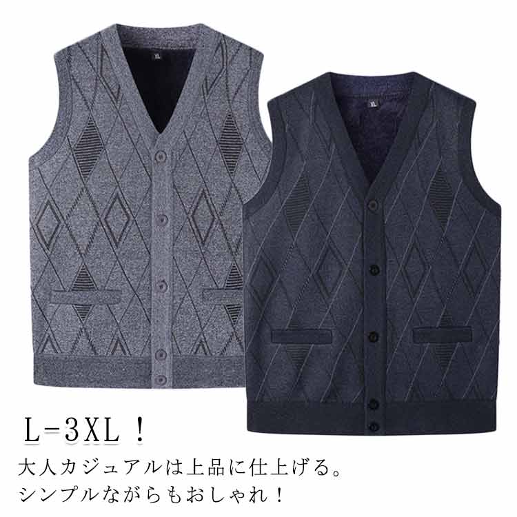 裏起毛 ニット ベスト メンズ ニット ニットセーター Vネック 前開き ノースリーブ 春秋冬 父の日 敬老の日