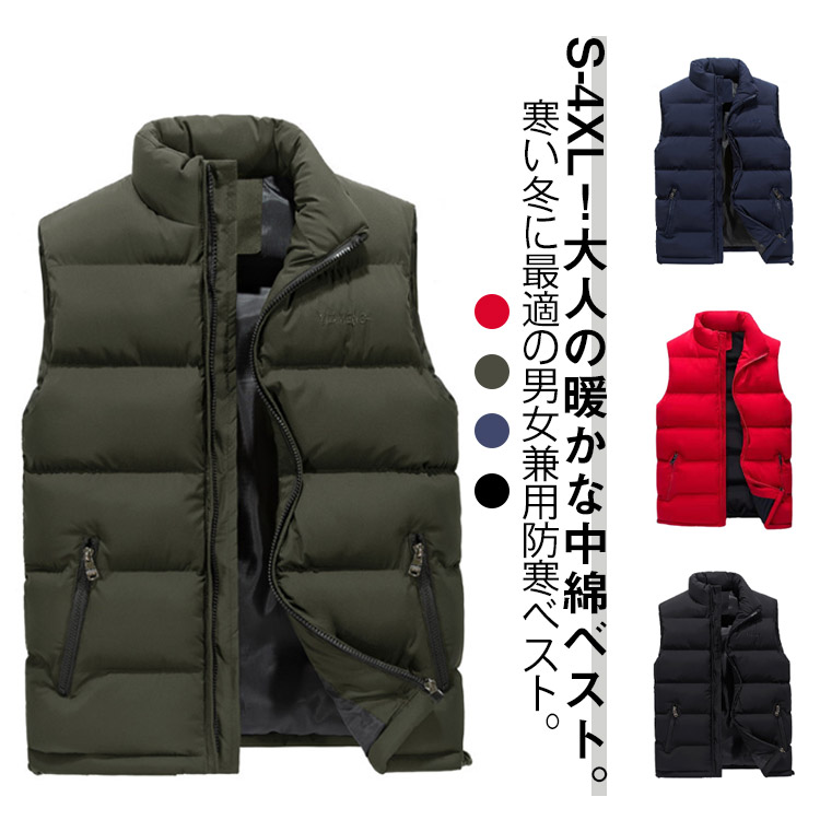 大人の暖かな中綿ベスト ダウン風ベスト 無地 冬 中綿ベスト 防寒 メンズ 男性 ベスト S-4XL