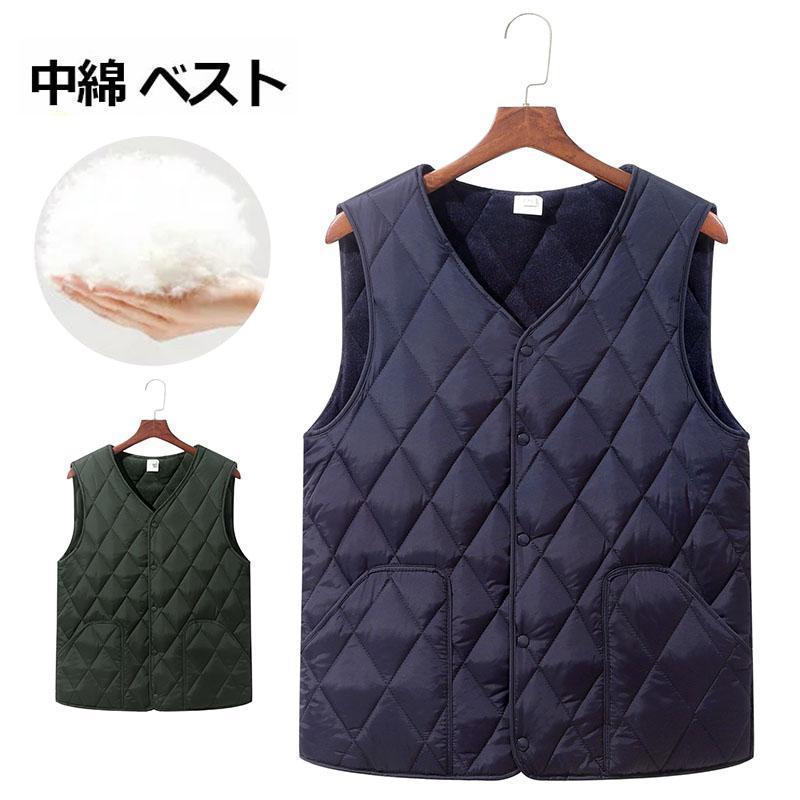 大人の暖かな中綿ベスト ダウン風ベスト 無地 冬 中綿ベスト 防寒 メンズ 男性 ベスト -4