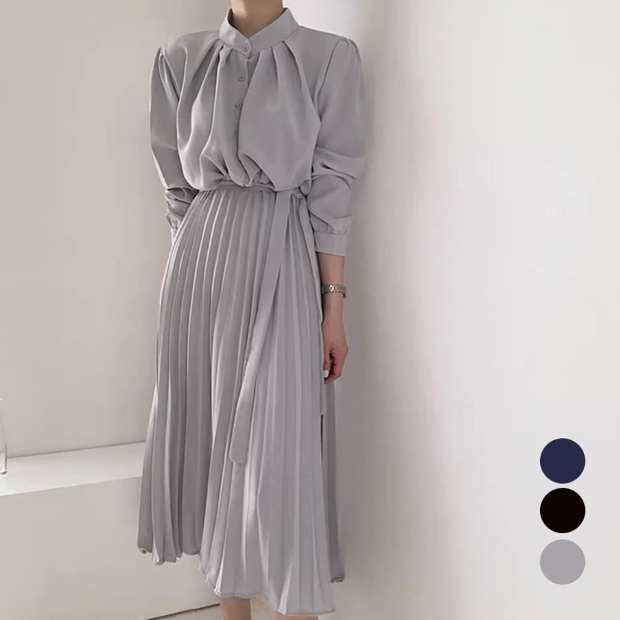 ロングワンピース 長袖プリーツ ワンピ 韓国レディースファッション ワンピース