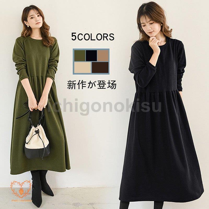 ロングワンピース 長袖 レディース 春 黒 入学式 秋冬 ロング丈 マキシワンピース きれいめ カジュアル 着痩せ マタニティ ゆったり トレーナー 無地