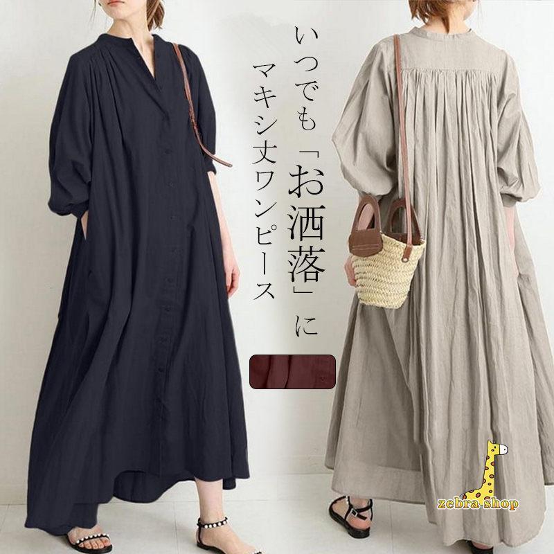 シャツワンピース ロングワンピース レディース マキシ丈 無地レディースファッション ワンピース