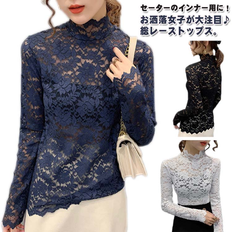 レイヤードスタイルを女性らしく魅せてくれる 総レース ハイネック シアー トップス レディース 清楚 インナー レース 花柄 カットソー 薄手 オフィスカジュアル 韓国 メロウ お呼ばれ