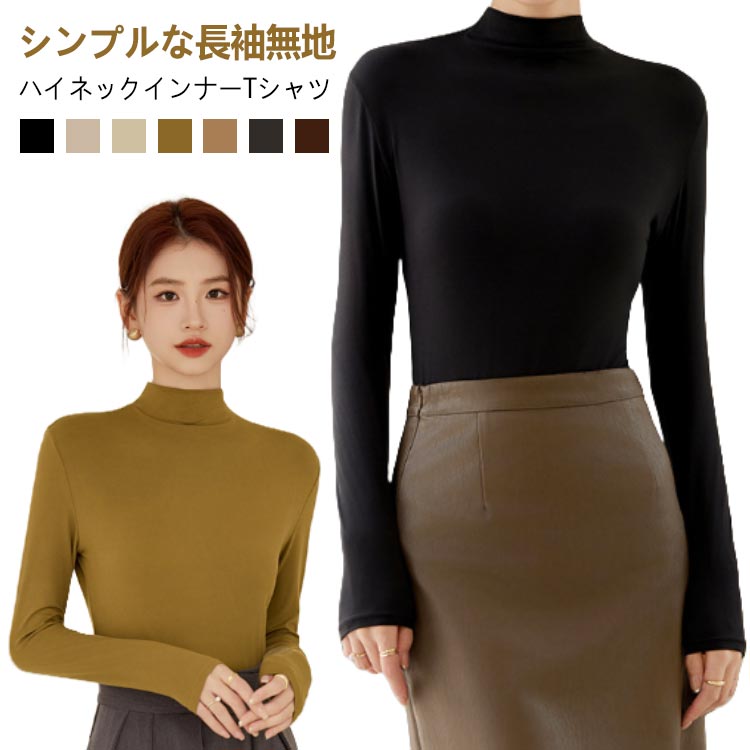 ハイネックTシャツ レディース 長袖 シンプル 無地 インナー カットソー トップス 春秋冬 重ね着 コーデ 女性用 長袖tシャツ 無地