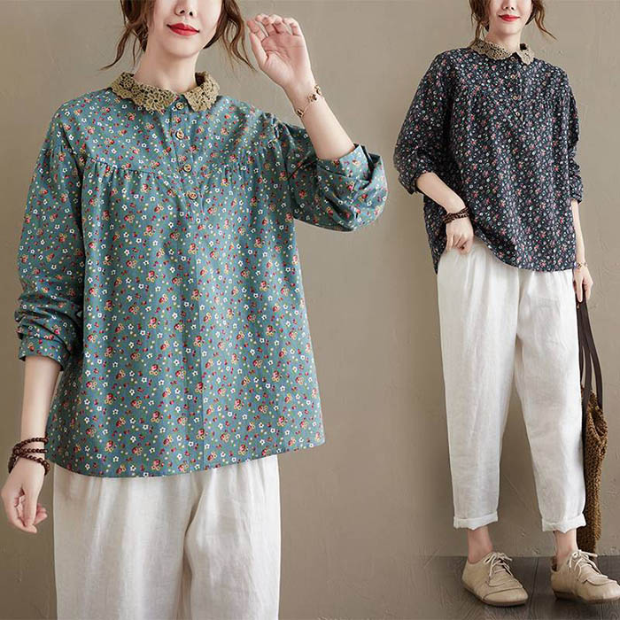 シャツ ブラウス 花柄 長袖 レディース 春 秋 夏 トップス フェミニン シャツ ボタンあり 着回し シンプル おしゃれ 大人 カジュアル こなれ感 着心地優しい 柔らかい