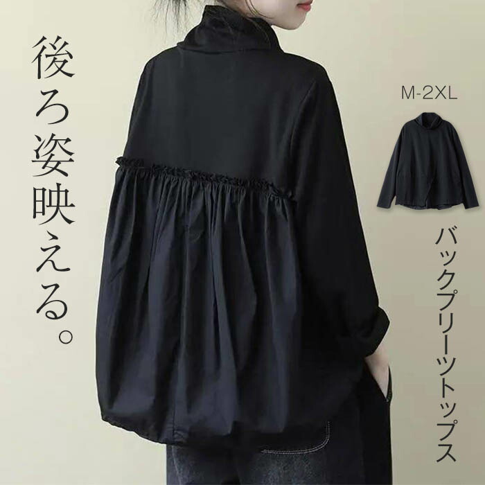 ハイネック カットソー レディース プルオーバー 春秋 長袖 シャツ 異素材 切り替え トップス カットソー バックデザイン ドッキング チュニック ハイネック 大きいサイズ ゆったり