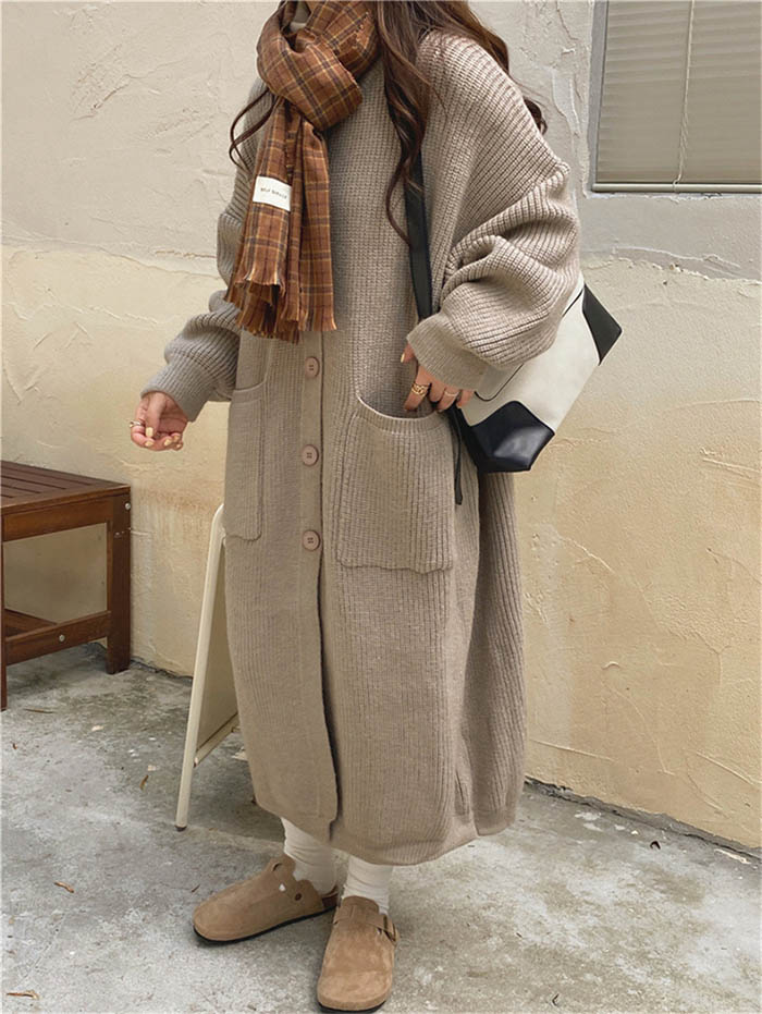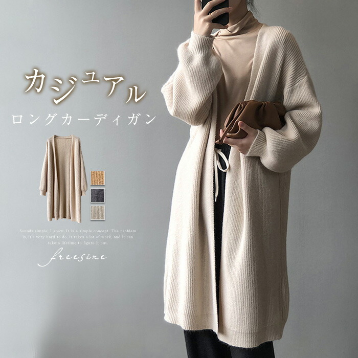 カーディガン レディース ロング丈 カーディガン ニット 春 秋 冬 ニットカーディガン カーデ コート アウター 畦編みニット 厚手 羽織り ゆったり 柔らか カジュアル 体型カバー