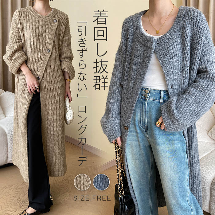 カーディガン ニット レディース ロング丈 春 秋 ロングカーディガン ニットカーディガン カーデ コート アウター 羽織 あったか ニット セーター ビッグシルエット