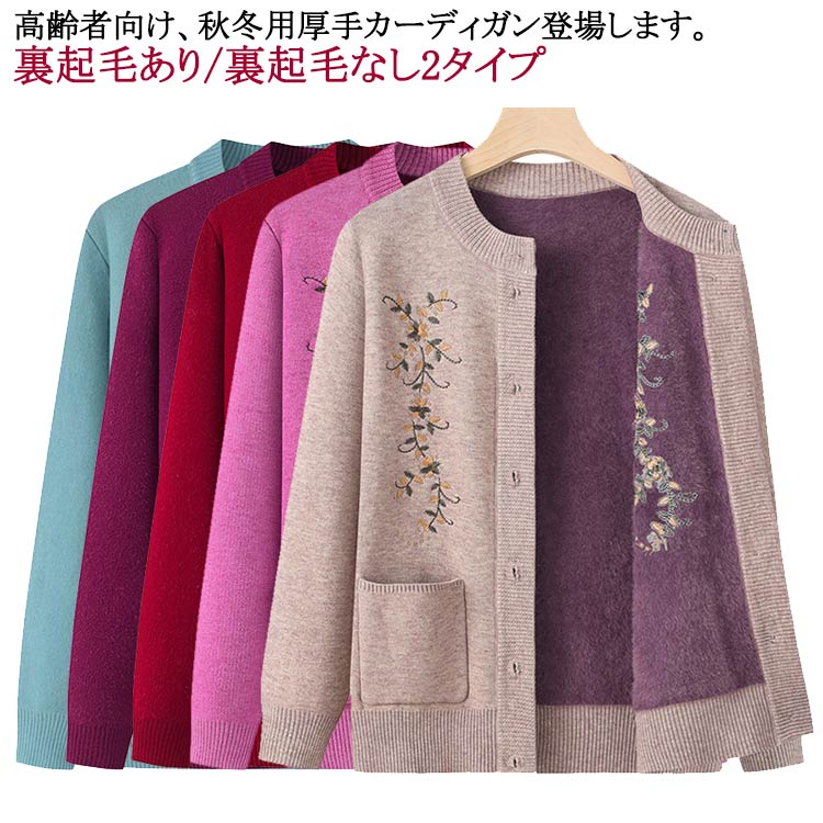 おばあちゃん用裏起毛ニットカーディガンです 保温効果は抜群 裏起毛なし 2タイプ 春 秋 冬レディースファッション トップス カーディガン ボレロ