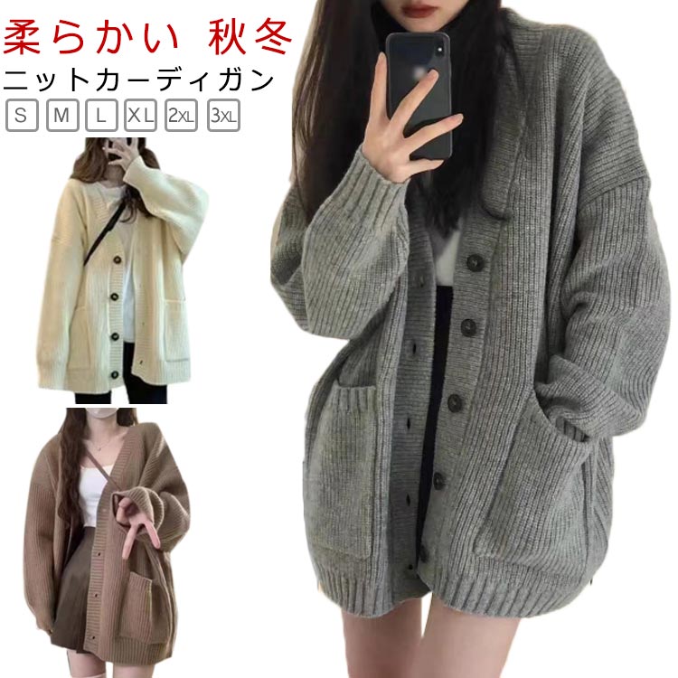 ニットカーディガン レディース カーディガン ニット セーター 長袖 無地 秋 冬 羽織 アウター シンプル 体型カバー 通勤 可愛い 無地 ゆったり 部屋着 ルームウェア ビッグシルエット