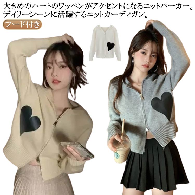 ニットパーカー カーディガン ショート ジップアップパーカー ジップ 春 秋 冬 韓国 トレンド 大人可愛い デイリー