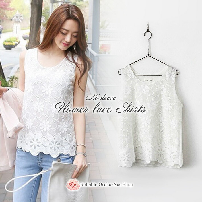 花柄デザインがを感じさせてくれる ノースリーブ タンクトップ トップス ブラウス シャツ シースルー レース スカラップ 刺繍 可愛い 白 ホワイト 夏