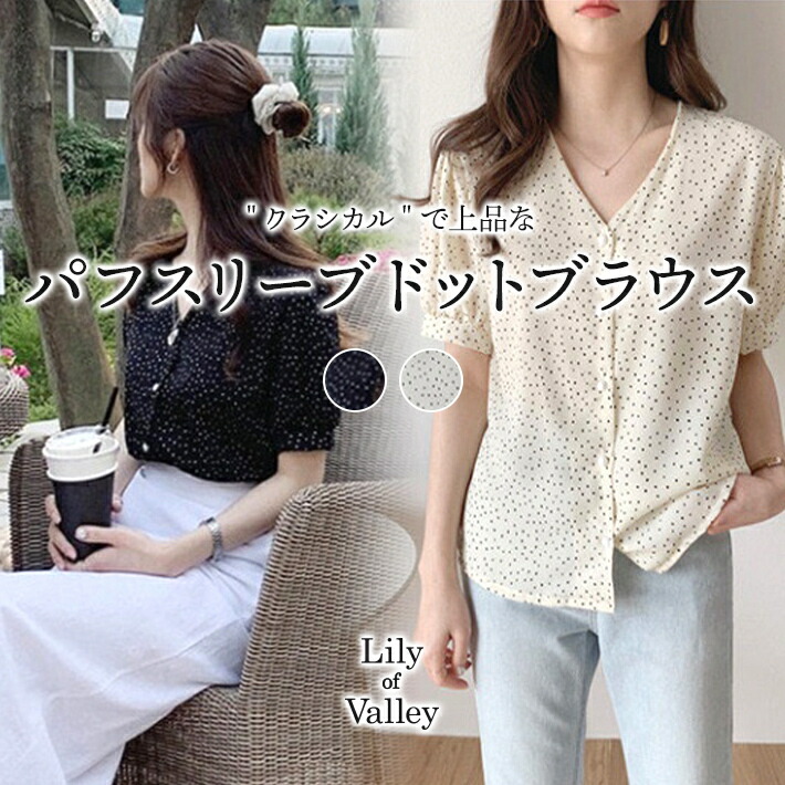 クラシカルでキュートな雰囲気が目を惹く♪パフスリーブ ベビードット ブラウス レディース トップス シアー シースルー シャツ パフ袖 水玉 オフィス 柄 オフィスカジュアル 春夏
