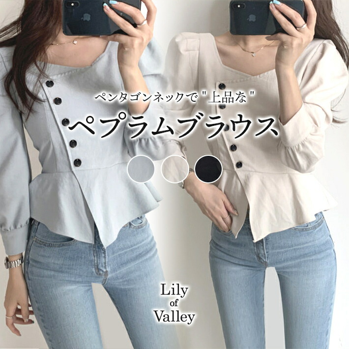 上品なレトロデザインがおしゃれのポイントに イレギュラー カシュクール パフスリーブ ペプラム ブラウス トップス チュニック ボリューム袖 清楚 パフ袖 きれいめ 春夏 秋冬