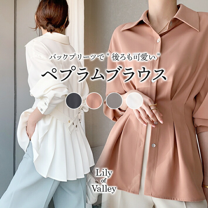華やかさと上品さを兼ね備えた逸品 バックプリーツ ペプラム ブラウス レディース シャツ ふんわり 無地 プリーツ ゆったり フレア ボリューム袖 オフィスカジュアル チュニック