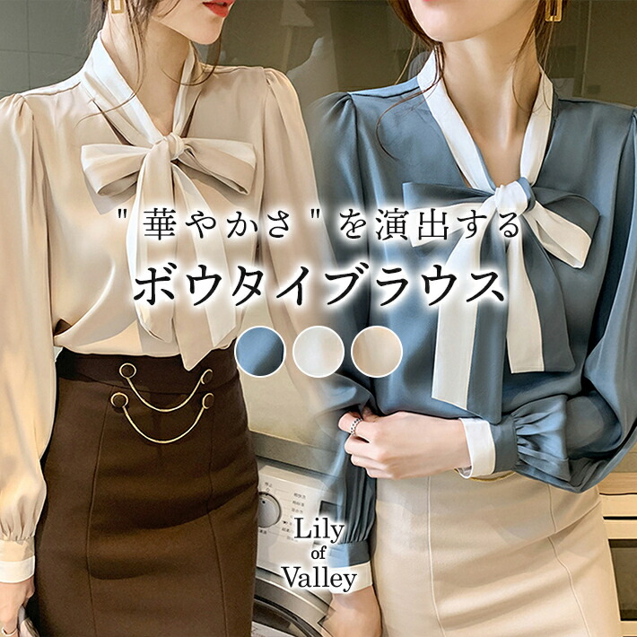 女性らしい華やかさを演出してくれる バイカラー ボウタイ ブラウス レディース トップス シャツ 二次会 パーティー フォーマル オフィスカジュアル お呼ばれ 大人可愛い 韓国