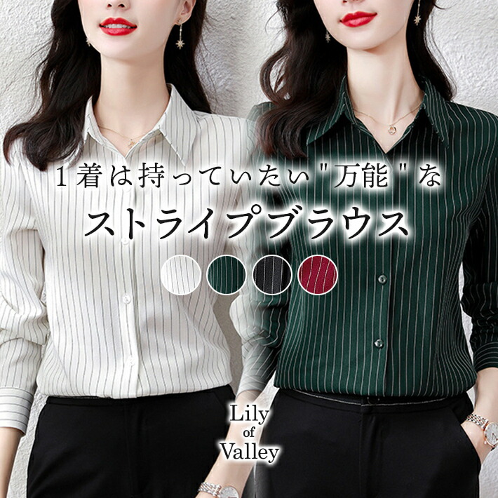 1着は持っておきたい万能アイテムの シンプル ストライプ ベーシック ブラウス レディース 清楚 襟付き 柄 フォーマル オフィスカジュアル 大きいサイズ お呼ばれ 韓国 シャツ