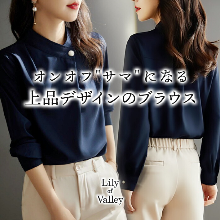 オンオフどちらもサマになる上品デザインの 1つボタン シンプル ブラウス レディース ハイネック シャツ 大きいサイズ 韓国 オフィスカジュアル 入学式 入園式 卒業式 卒園式 秋 冬 春