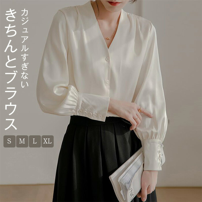 シャツ ブラウス レディース 長袖 春 秋 Vネック トップス サテン シャツ 長袖 羽織り フェミニン 着回し シンプル おしゃれ 大人 カジュアル こなれ感 早春 大きいサイズ 上品 光沢感