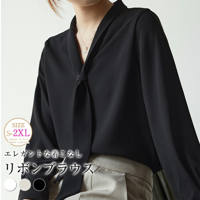 シャツ ブラウス レディース オフィス シャツ スーツ インナーシャツ 長袖 春 夏 秋 トップス シャツ リボン フェミニン 着回し シンプル おしゃれ 大人 カジュアル こなれ感
