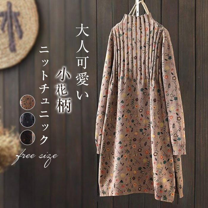 チュニック ニットカットソー レディース 秋 冬 セーター 長袖 ハイネック ニット プルオーバー 花柄 キレイめ トップス ゆったり 春 秋 冬 大きいサイズ 森ガール カジュアル 大人可愛い