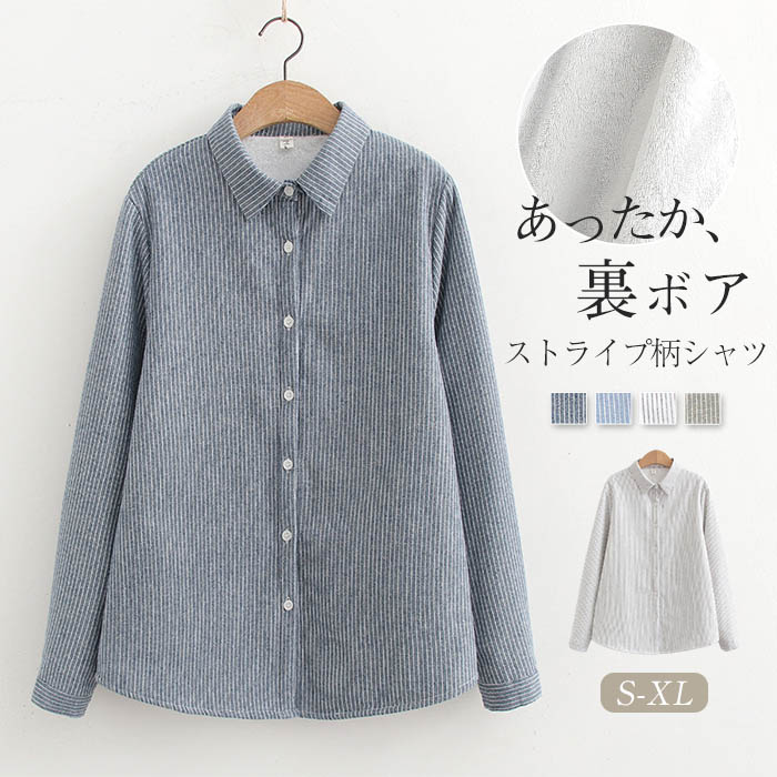 シャツ 裏ボア レディース 冬 裏起毛シャツ ストライプ 長袖 トップス 羽織り シャツ ジャケット 裏ボア あったか 厚手 アウター 裏ボア あったか フェミニン 着回し シンプル おしゃれ