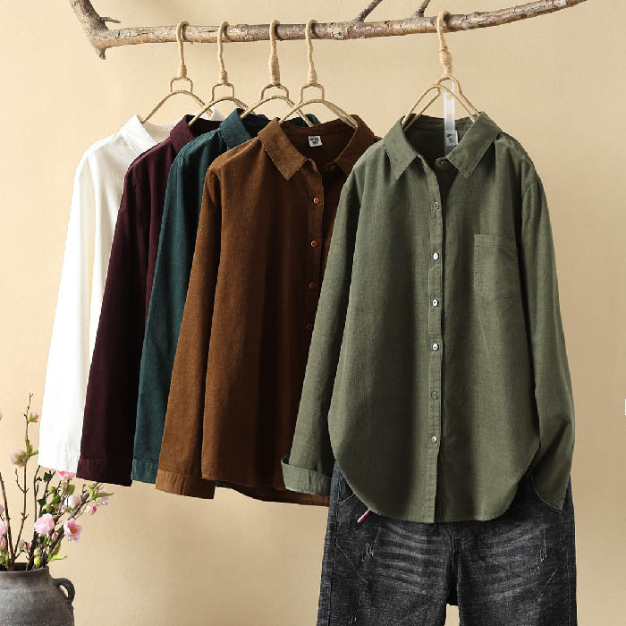 シャツ コーデュロイ 無地 コーデュロイ シャツ レディース 長袖 ブラウス シャツ トップス シャツブラウン 大人 厚手 秋冬 通勤 通学 前開き ゆったり オフィス ビジネス
