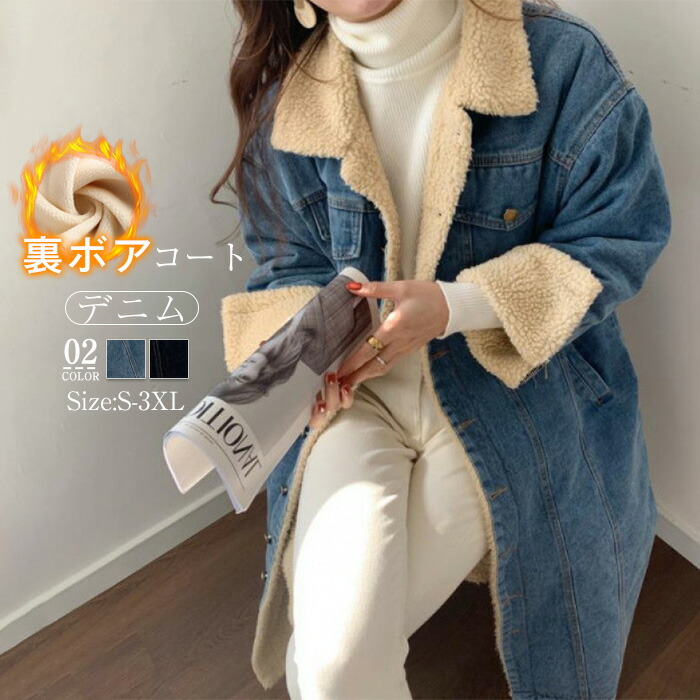 デニムコート レディース 冬 裏起毛 デニム ポケット付き 長袖 トップス 羽織り デニム 裏ボア あったか 厚手 フェミニン 着回し シンプル
