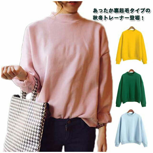 レディース スウェット プルオーバー 裏起毛 ハイネック 無地 シンプル ゆったり 大きいサイズレディースファッション トップス スウェット トレーナー