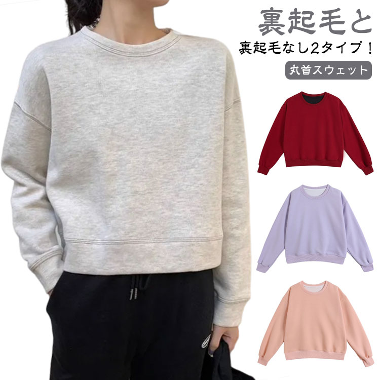 ショート丈トレーナー レディース スウェット プルオーバー ゆったり シンプル トップス 秋冬 春服 重ね着 カジュアル