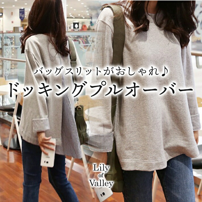 着るだけでトレンドのレイヤードスタイルが叶う ストライプ シャツ ドッキング プルオーバー レディース トップス カットソー スウェット 大きいサイズ オフィスカジュアル