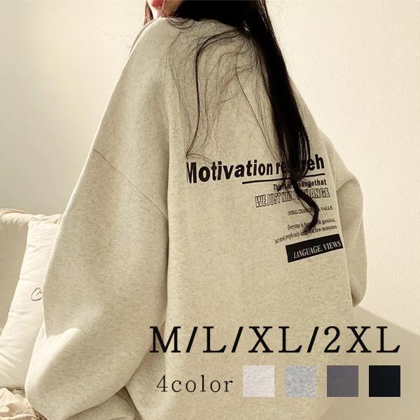 トレーナー スウェット ロンt 長袖 薄手 トップス 韓国風 オーバーサイズ バックロゴ かわいい カットソー 大きめ 楽ちん レディース