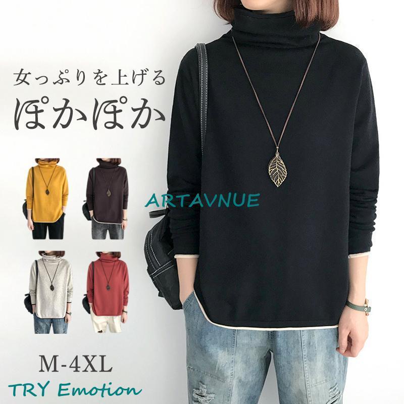 トレーナー レディース 長袖 Tシャツ ハイネック 防寒 暖かい 無地 シンプル 秋冬 きれいめ 体型カバー 可愛い 着痩せ 通勤 通学 40代