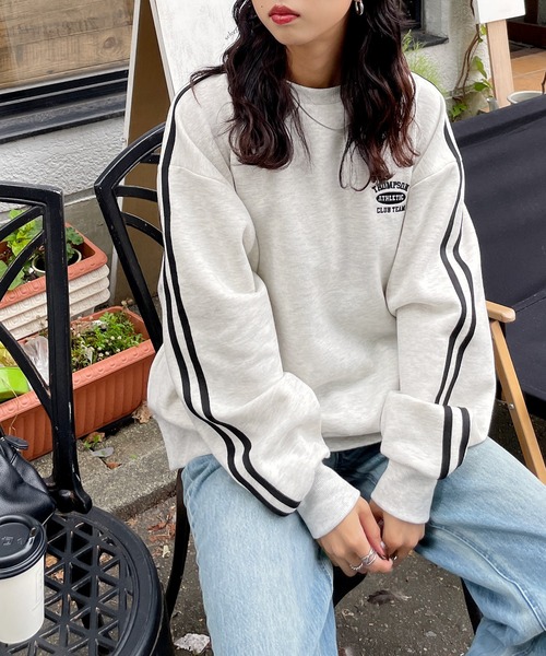 スウェット 24AW ラインスリーブスウェットトレーナー レディースレディースファッション トップス スウェット トレーナー