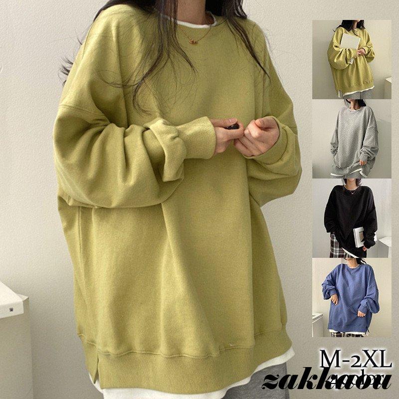 トレーナー スウェット プルオーバー 秋新作 レディース ロング丈 長袖 大きいサイズ 秋冬 トップス ゆったり 韓国風 ビッグシルエット オーバーサイズ おしゃ