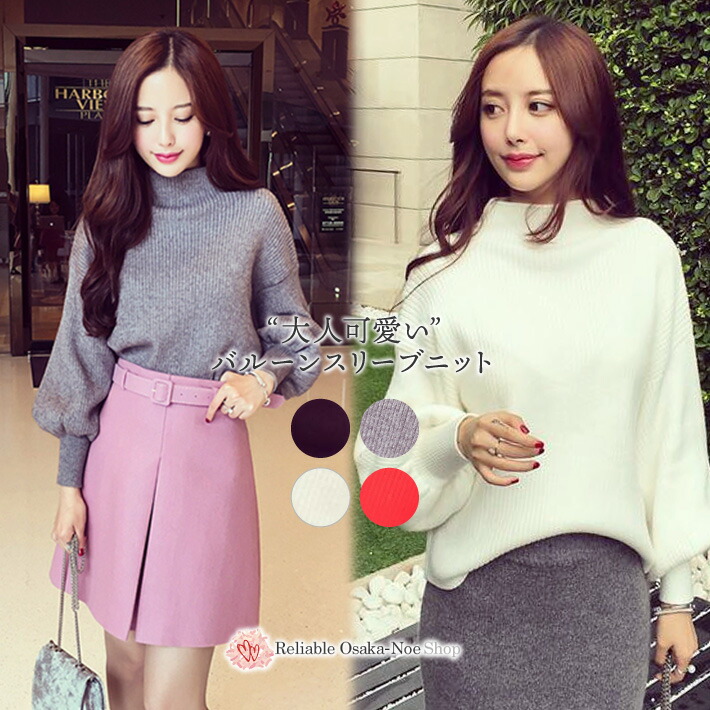 今年トレンドの、ボトルネック&ゆったりバルーン袖が大人可愛い印象を♪ バルーンスリーブ リブ ニット セーター ボトルネック ハイネック レディース トップス 暖
