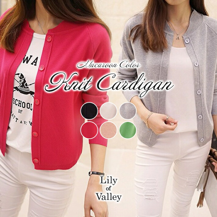 着るだけでクラシカルなムード漂う☆華やかなマカロンカラー ニット カーディガン トップス レディース ストレッチ ショート丈 タイト リブニット シャツ チュニック お呼ばれ 春夏秋